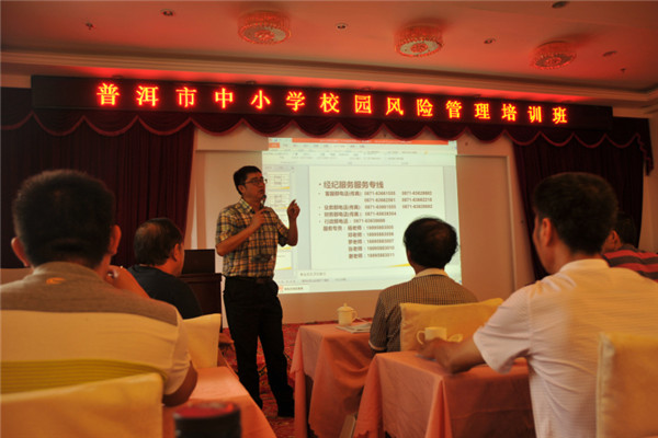 為認(rèn)真貫徹落實(shí)《云南省教育廳關(guān)于舉辦中小學(xué)校園風(fēng)險(xiǎn)管理培訓(xùn)班的通知》(云教函[2015]317號)文件精神,進(jìn)一步加強(qiáng)普洱市學(xué)校安全教育和管理工作,切實(shí)提高基層學(xué)校風(fēng)險(xiǎn)防控的能力,于2015年8月25日舉辦了義務(wù)教育階段學(xué)校校園風(fēng)險(xiǎn)管理培訓(xùn)班。我公司特邀請專業(yè)律師和保險(xiǎn)專家,組成培訓(xùn)小組,對參訓(xùn)人員進(jìn)行了培訓(xùn)。專業(yè)律師和保險(xiǎn)專家圍繞依法治校、安全管理方法、法律風(fēng)險(xiǎn)規(guī)避方法、教育風(fēng)險(xiǎn)及風(fēng)險(xiǎn)管理辦法、保險(xiǎn)法等內(nèi)容展開了詳細(xì)的講解。我公司業(yè)務(wù)總監(jiān)羅琳對2014學(xué)年受理的校方責(zé)任保險(xiǎn)案例作了詳盡的分析,并提出了相關(guān)風(fēng)險(xiǎn)管理建議。她指出,我省校園安全責(zé)任事故類型主要以意外傷害事故為主,因此加強(qiáng)安全與防范教育以及校園課間管理尤為重要?头苦嚂喳愒敿(xì)解釋了《云南省教育廳等四部門關(guān)于加強(qiáng)學(xué)校保險(xiǎn)工作的指導(dǎo)意見》(云教體[2014]26號)中所列的險(xiǎn)種,并提出了相關(guān)建議。